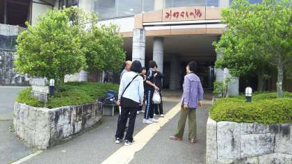 各農家で体験した生徒は、近くの温泉に連れてきてもらいます。写真は、そのうちの一つで、みはらしの湯です。男子がホストファミリーのお父さんに連れられて、やって来ました。「トマトヤレタス、トウモロコシの収穫をしました」と、嬉しそうに報告してくれました。