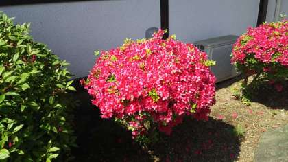 昨日、生徒たちがお世話になった温泉の一つ「羽広温泉 みはらしの湯」は、少し高い場所にあります。整備された植え込みの中に「レンゲツツジ」が咲いていました、。大阪では4月には花が散っていましたね。