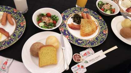 様々なアレルギーの対応として、ハッシュドポテト、オレンジジュース等が配膳されていました。