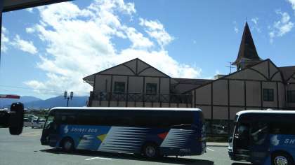 これから昼食になりますが、3台のバスが昼食会場の安曇野スイス村に集合します。