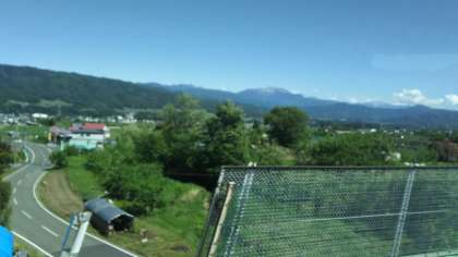 車窓から、南アルプスの山々がよく見えています。1日目には、曇っていたので見えませんでした。
