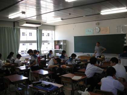 2年3組、4組の昼食時間の様子です。
