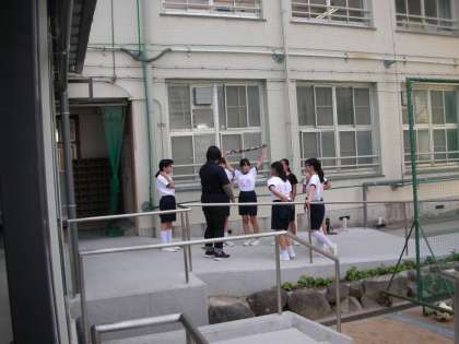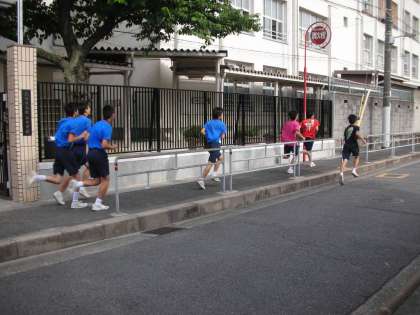 ソフトテニス部は、今日はしんどい日です。ランニングと柔軟運動等基礎体力をつけるメニューです。