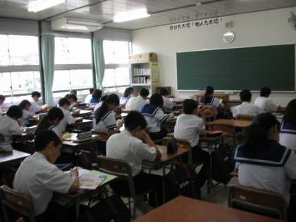 1年生は、読書を行っています。静かに本を読んでいます。本を読む習慣が身につくと、きっと良いことが生まれてくるのではないでしょうか。