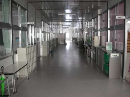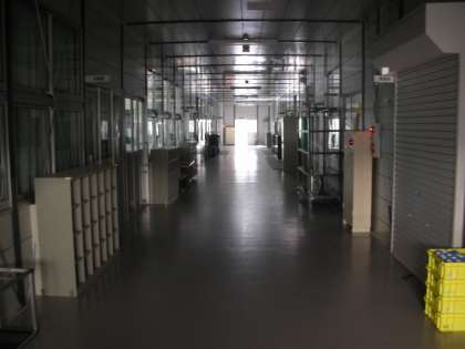早朝の仮設校舎の廊下の様子です。