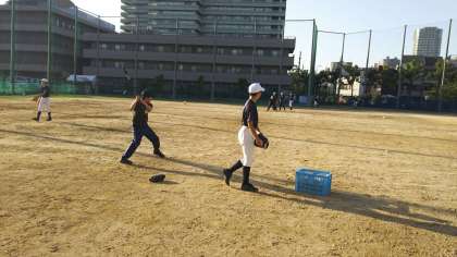 野球部は、第2グラウンドで練習をしています。三年生がノックをしています。
