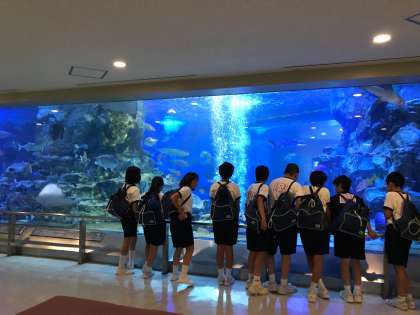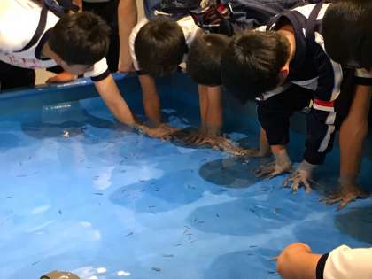 「ごちそうさま」の後、班ごとに施設見学です。たくさんの種類の魚がいました。