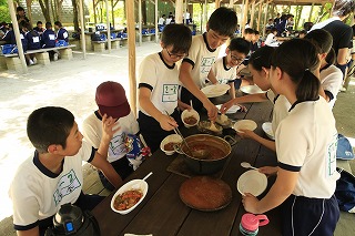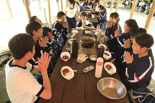 さて、お待ちかねのカレーライスが出来上がりました。みんなで手を合わせて、「いただきます」