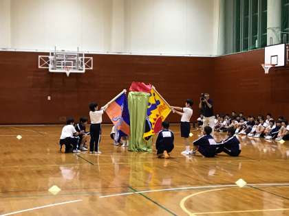 いよいよ開会です。聖火が入場し、聖火台に火が灯されました!