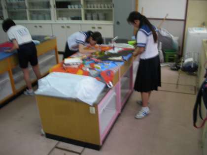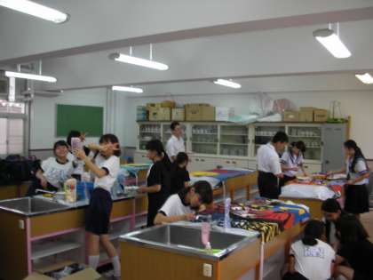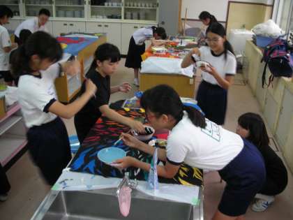 応援旗を作製している人たちがいました。クラスメートと協力し合って頑張っています。