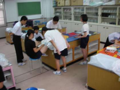 応援旗づくりも最後の追い込みです。みんながんばれ!