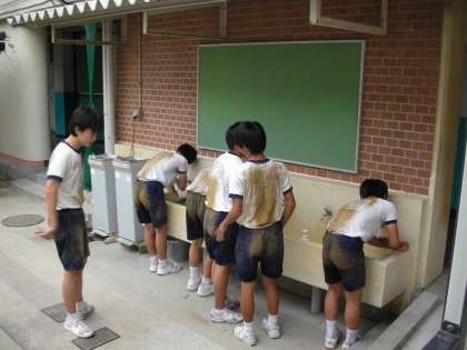 放課後の部活動で、思いっきり体を鍛えぬいた直後の写真です。体操服全体が砂だらけです。一生懸命練習をした証ですね。青春の1ページですね。