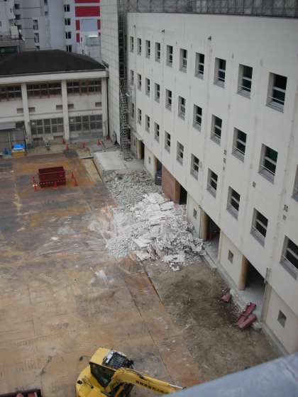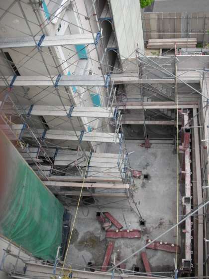 さて、西館屋上から撮影した南館との渡り廊下があった部分の写真です。鉄骨が切り取られ、南館は、完全に独立棟になったようです。間もなく本格的な解体作業に入るのではないでしょうか。