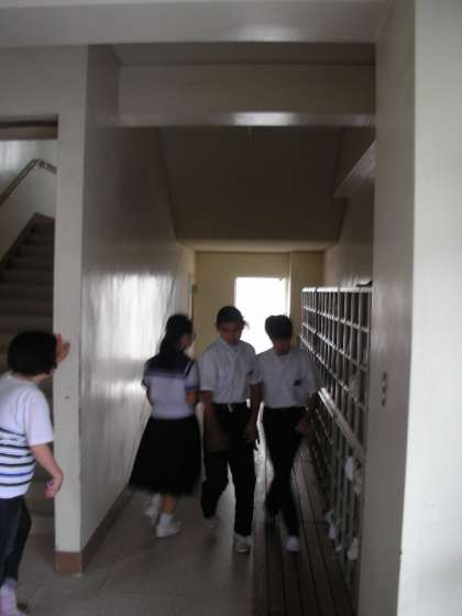 体育館に入館する生徒たちです。