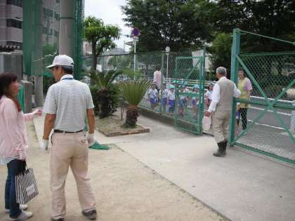 第2グラウンドでは、中野昭和会の皆様がグラウンドのネット裏に畑や花壇を作っておられます。また、グラウンド内の雑草を定期的に刈ってくださり、体育の授業や部活動が支障なくできるように、整備してくださっています。