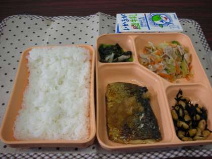 今日は、鯖のおろしポン酢かけ、豚肉と野菜の炒めもの、大豆とひじきの煮物、小松菜としめじのおひたしでした。
