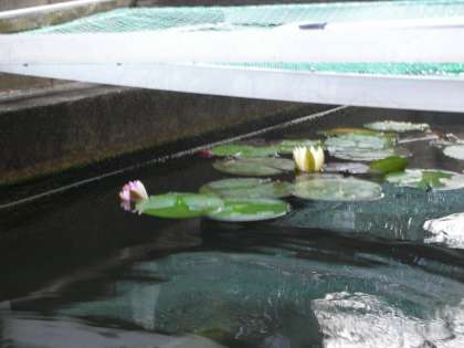 なすびの花が咲いています。コイが泳いでいる池には、睡蓮の花が咲いています。様々な場所で、生命の息吹を感じることができます。都中では、大きな工事が行われているので、植物は、限られたところにしかない状況です。ひっそりと花を咲かせている姿に、「ホッ」とさせられます。