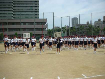 1年2組、1年3組の順です。最後は、フィールドに全クラスが整列しました。