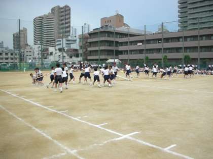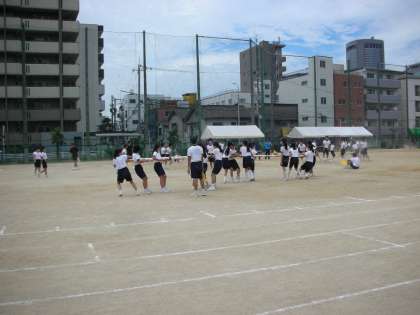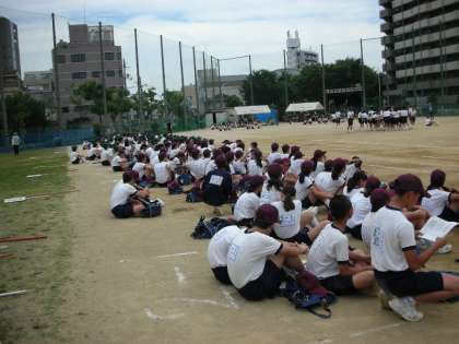 棒引きを見ている『観客』。みんな座って、競技を楽しんでいます。