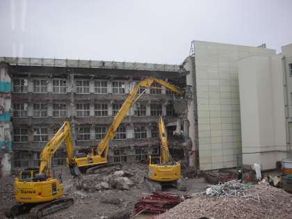 午後2時30分頃の様子です。 大きな重機が南館4階のトイレ付近の解体をしている様子です。