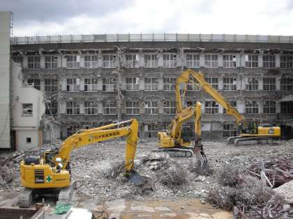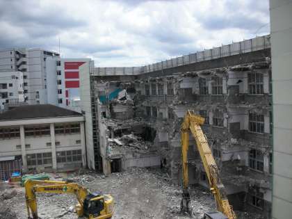 お昼休みになりました。工事がどんどん進んでいます。南館の東側の階段付近を解体しています。