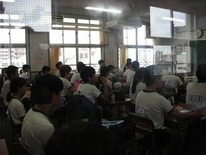 「今から体育大会が始まる。頑張るぞ!」という思いを担任の先生と一緒に共有しているようです。