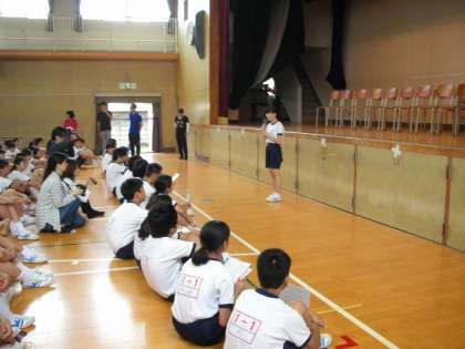 10時20分から、応援合戦を行いました。応援合戦の注意事項が生徒代表からありました。