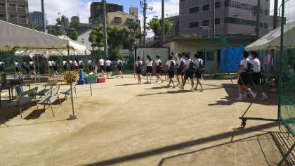 絶好の体育大会日和です。生徒は、続々と会場に到着しています。保護者の皆さま、お時間の許す限り、お子さまの頑張っている姿を応援してください。お願いいたします。