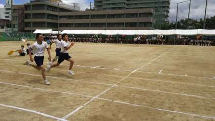 三年生の女子と男子の100m走です。さすがに三年生は、体格もよく運動部の人は、とても速いですね。最後まであきらめないで、走りきる姿が格好いいですね。