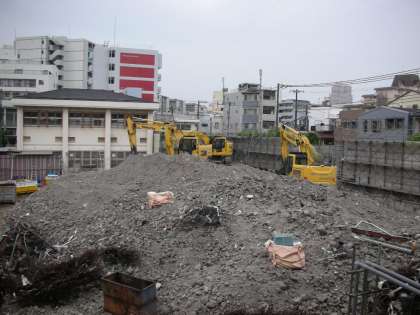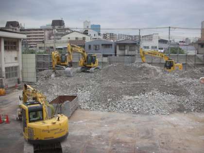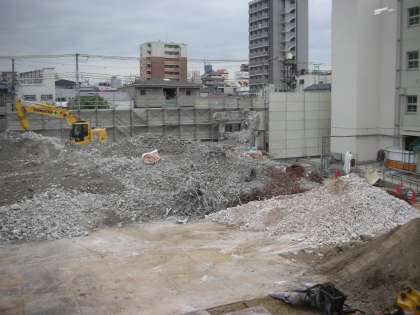 3枚目の写真は、西館2階から撮影したものです。ほぼ2階と同じ高さまで細かく砕かれたコンクリートが積み上げられています。完全に分別したのちに、どんどんこれらの廃材が撤去されていくと思います。