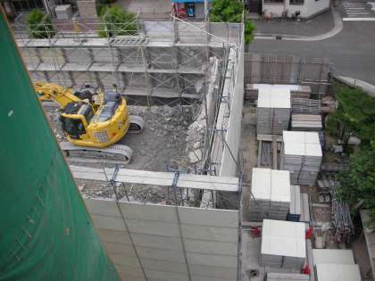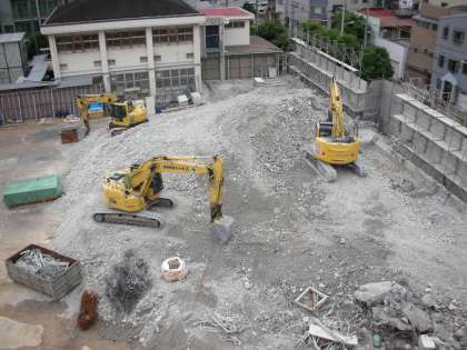 さて、写真は、西館屋上から撮影した南館西側の部分です。一番端の壁が少しだけ残っています。もうすぐ解体されるのでしょう。