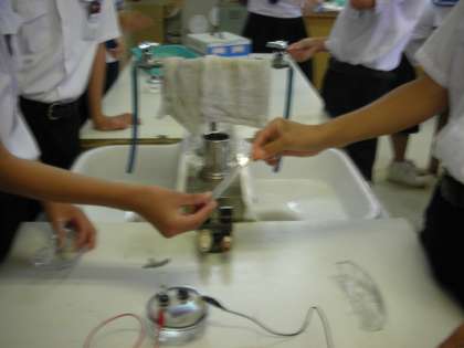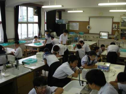 実験は、生徒にとっては魅力ある授業の一つです。男子も女子も協力し合って、実験を進めています。