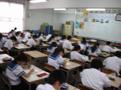 美術室を訪ねました。1年3組の生徒たちが作品に取り組んでいました。各々が題材となる野菜を持参して、それをスケッチしています。真剣に野菜とにらめっこしている人もいます。