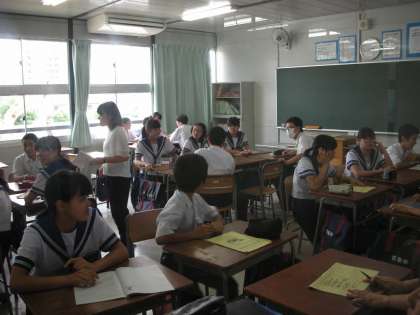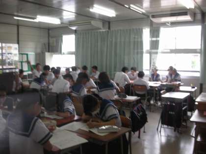 2年3組と4組の写真です。白熱した話し合いをしています。