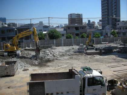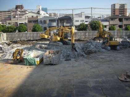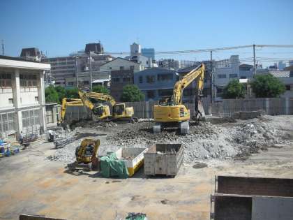 南館の解体工事は、基礎部分を取り出す工事が始まりました。丁寧にコンクリートをつまんでは、鉄筋とコンクリート片に分別しています。ふたたび廃材が少しずつ高く積みあがってきました。