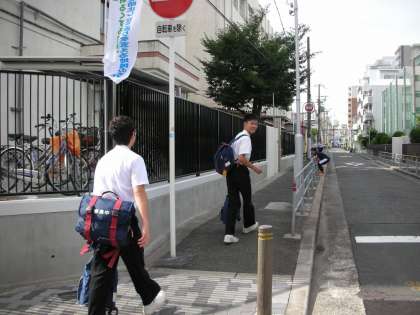 生徒たちは、今日も暑い中をカバンを背負って登校してきます。汗をかきながらの登校です。それでも元気に登校してきます。