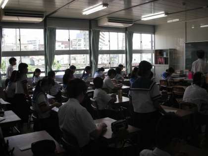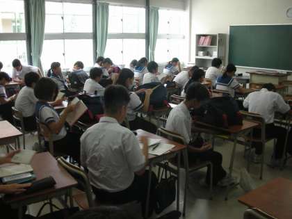 2年生の朝の学活の時間です。1時間目の準備は、机上にできています。