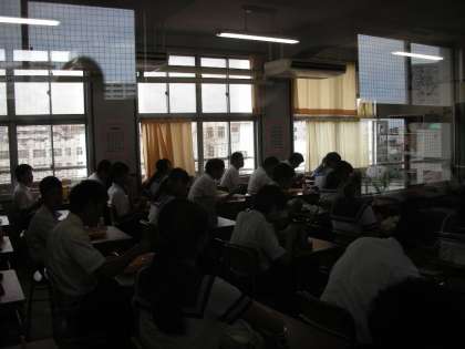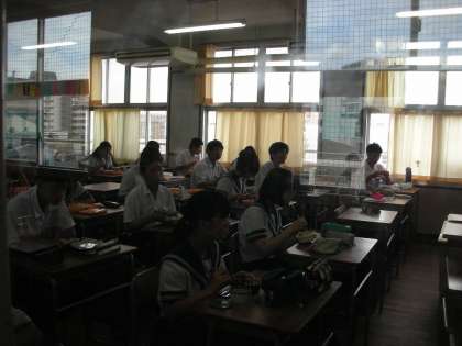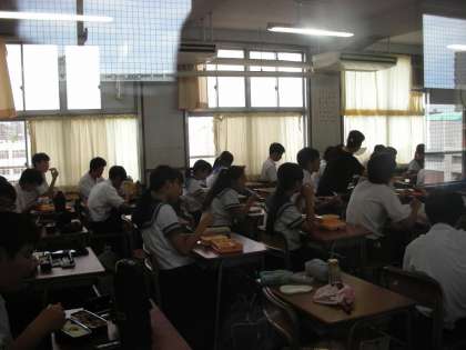 3年生の昼食の時間です。みんな楽しそうに食事をしています。