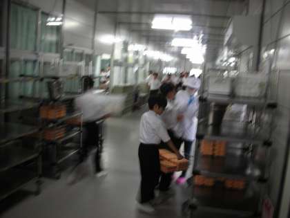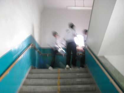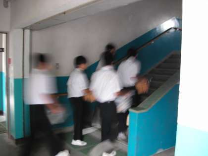 教室まで階段をの持って給食を持ってあがります。