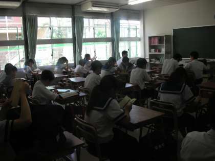 担任の先生が打ち合わせをしている間は、読書をしています。自ら進んで読書をしています。素晴らしい!