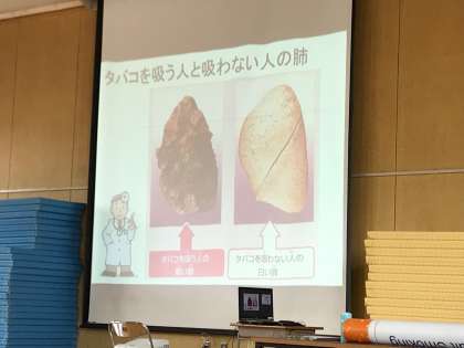 写真は、ニコチンやタールで汚れた肺と健康な状態の肺の写真です。「大人になってもたばこを吸わないぞ」と、決意した人も多いのではないでしょうか。