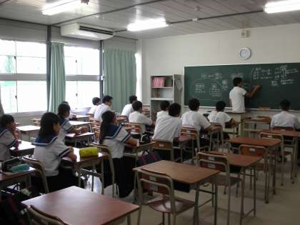 全学年とも補充学習を行っています。夏の暑い中を学習するために登校している仲間がいます。先生も説明に力が入っています。