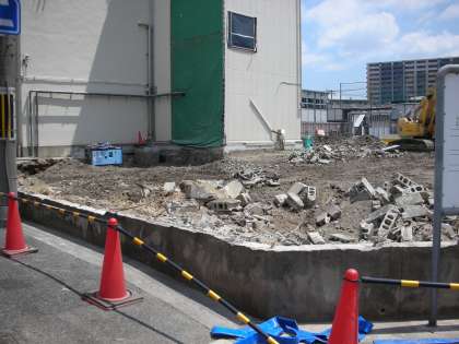 7月24日(火)に、南東角からごみの集積場までのブロック塀が解体されました。この部分は、重機がある間に先行的に解体されました。南館工事が行われている間に順次改修されていきます。ブロック塀がなくなると本当に見通しが良くなりますね。そして、広く感じます。楽しみですね。