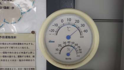 今日の午前7時現在の温度計は、気温31.8度、湿度62%を示しています。じめじめした感じはありませんが、厚いです。どうぞ、ご自愛ください。
