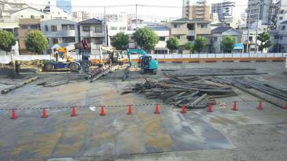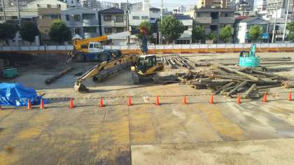 さて、2番目の写真は、3日(金)夕刻のものです。3番目の写真は、今朝のものです。引き抜かれた『杭』の数が増えています。この地道な作業がおそらくこの夏休み中、ずっと続くようです。これが取り除かれると、いよいよ新校舎の建築が始まります。楽しみですね。近隣の皆様には、しばらくご迷惑をおかけします。どうぞ、よろしくお願いいたします。