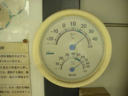 午前7時現在の温度計は、気温32度、湿度71%を示しています。今日もかなり気温が上がるようです。体調の管理には十分ご注意ください。