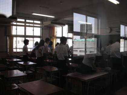 3年生は、教室で朝の学活を行っています。久しぶりの再会に、気分が高まっています。生徒たちは、もちろん再会を喜んでいますが、先生との再会に笑顔がこぼれています。