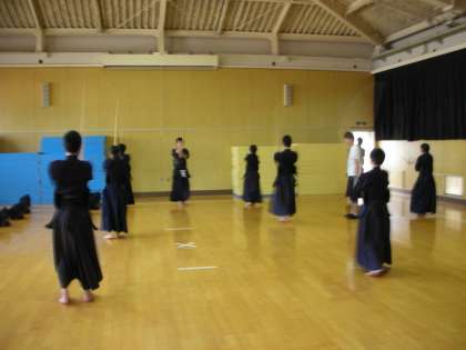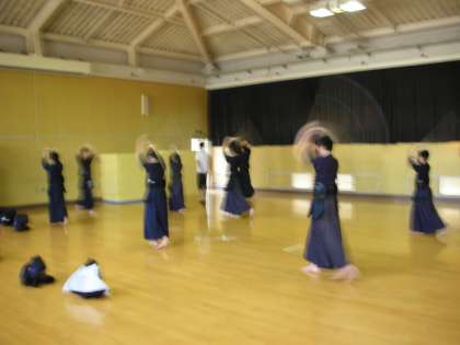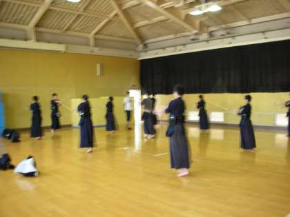打ち込みの練習をしています。暑い夏にも防具を身に着けて、稽古をしています。まさに暑中稽古です。