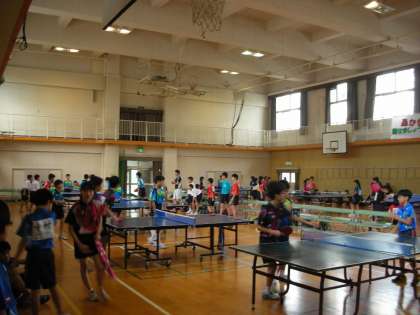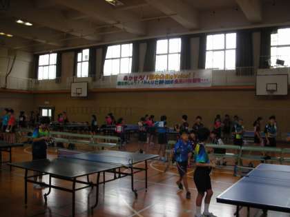 卓球部は、体育館で練習試合を行っています。日ごろは、同じチームの仲間と練習をしていますが、違うチームと試合をするときには、やはり緊張するようです。一つ一つの試合が経験になっていきます。頑張れ!