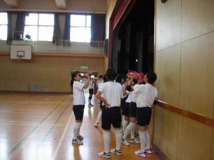 しかし、練習をリズミカルに行うために、水分補給の回数を十分とり、体調に配慮しながら練習を積み上げています。
